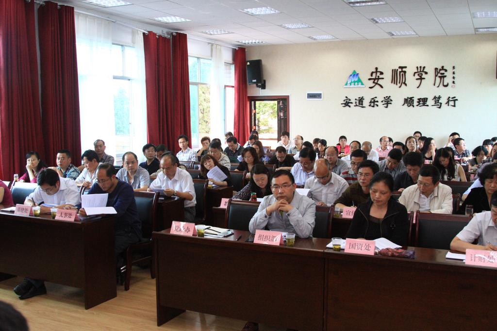 6月20日下午,安顺学院在学校水管所会议室召开评建工作推进会。安顺学院党委书记罗荣彬、校长李建军、党委副书记陶文彩、副校长熊国敏、纪委书记王之瑞,副校长王芳恒、令狐荣涛出席会议,学校各部门主要负责人,校属各学院党总支书记、院长,学校评建办公室全体成员参加会议。会议由学校评建办主任、副校长王芳恒主持。