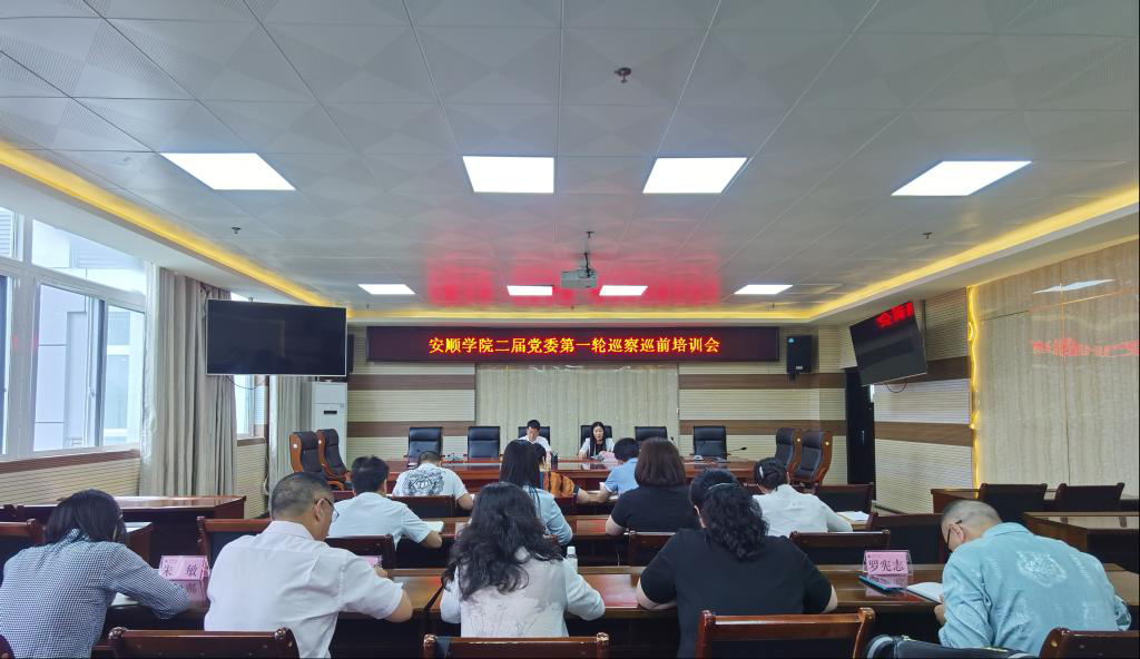2021年7月1日下午,在特教大楼七楼第一会议室对第一轮巡察干部进行巡前培训。培训会由安顺学院党委副书记陶文彩主持,纪委书记蔡红英授课。
