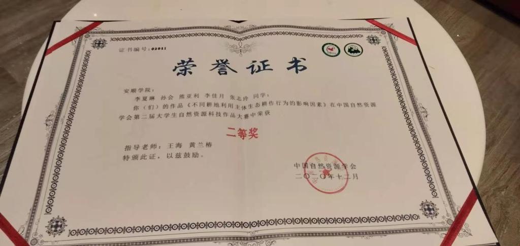 2020年12月20日,“中国自然资源学会第二届大学生科技作品大赛”决赛在江苏省徐州市举行。第二届大学生自然资源科技作品大赛受到全国各地高校的积极响应,共收到由全国81所院校选送的232份参赛作品。经过专家组层层遴选、优中选优,最终确定60项作品入围决赛。由安顺学院资环学院王海老师、黄兰椿博士、王恩文博士、伍倩博士指导的参赛作品《不同耕地利用主体生态耕作行为的影响因素》荣获二等奖。