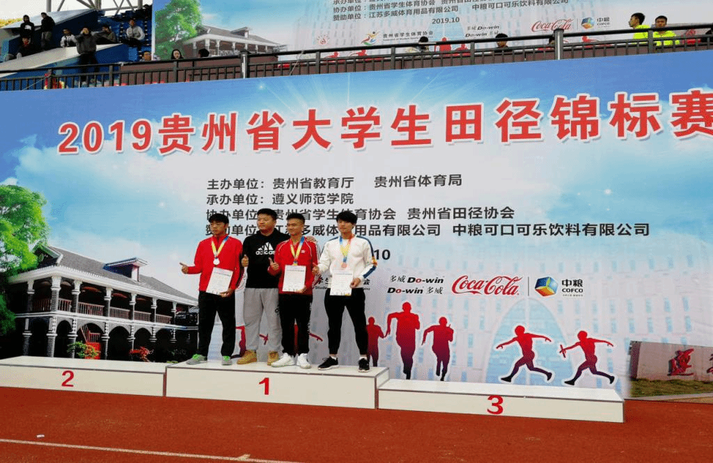 10月22日至10月25日,由贵州省教育厅、贵州省体育局主办,遵义师范学院承办的2019年贵州省大学生田径锦标赛在遵义师范学院西校区运动场举行。我校共派出23名运动员(其中甲组4人,乙组19人)参加本次比赛,并取得良好成绩。