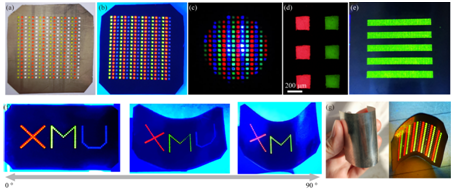 随着人工智能和无人驾驶时代的到来,提供具有超亮度、高穿透性和高空间分辨率的激光驱动自适应照明是必然趋势,而利用激光驱动像素化荧光转换器是最好的解决方案之一。然而,由于商用荧光粉颗粒尺寸较大,实现高性能像素化荧光转换器是一项极具挑战的工作。基于该新颖的设计策略,首次成功制备了全彩色pixelated-film@Ag。激光驱动的白色像素光和全彩像素光的实现,将在智能自适应照明和柔性大屏幕显示领域展现出很大的应用潜力。