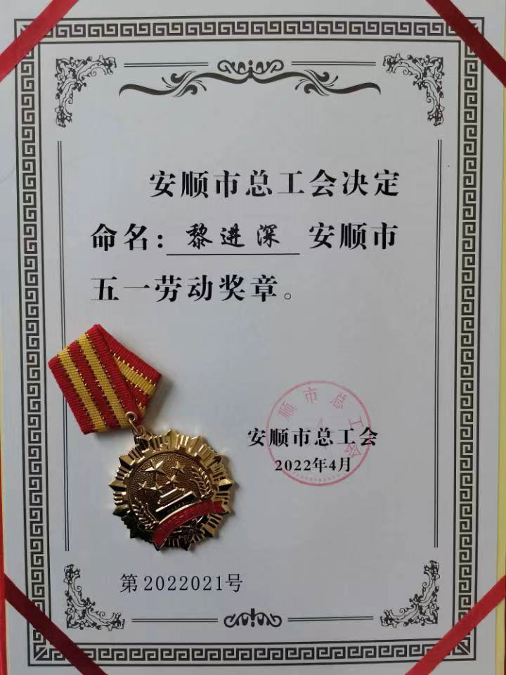 近日,从“奋进新征程·喜迎二十大”2022年安顺市庆祝“五一”国际劳动节暨命名大会传来喜讯,安顺学院马克思主义学院院长、教授黎进深被授予“安顺市五一劳动奖章”。