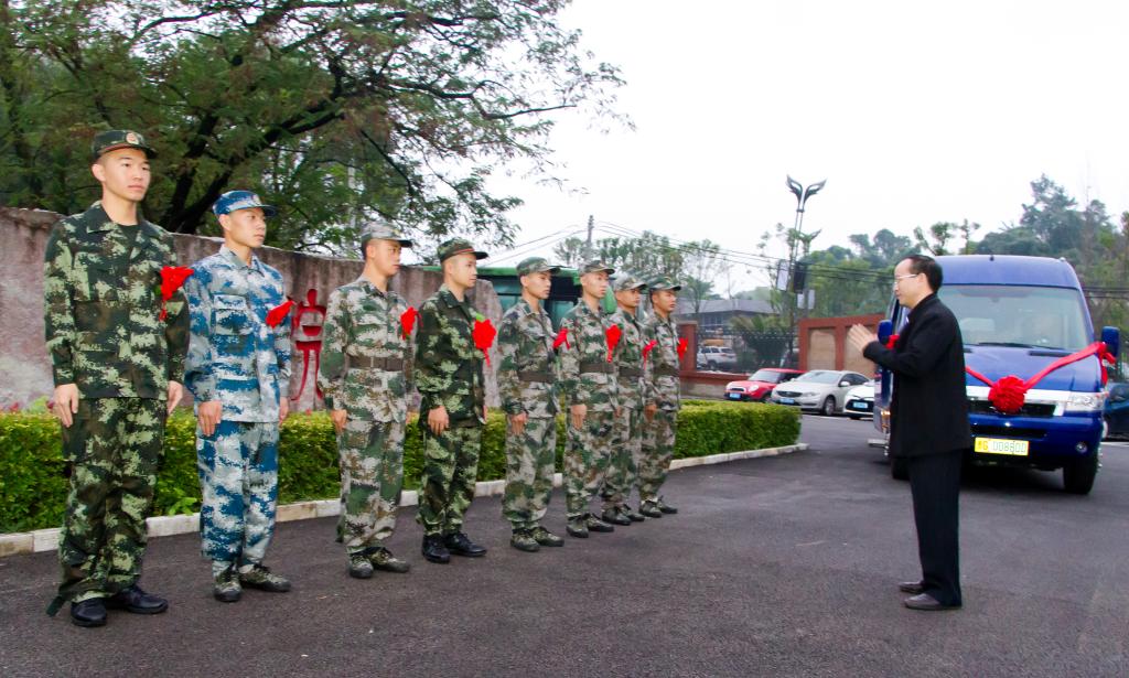 我校超额完成2018年夏秋季征兵任务,并分三批欢送应征入伍同学。第一批于2018年9月14日在学校集合,分两个方向踏上入伍行程。早上6:00,学校党委书记罗荣彬带着对应征入伍同学的殷切希望和满满祝福,到学校看望并送行。