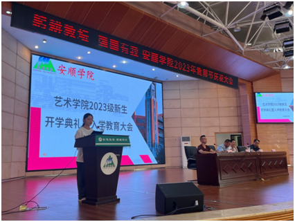 9月7日下午,艺术学院2023级新生开学典礼暨入学教育大会在学校学术报告厅举行。院党委书记陈观黔、院长罗文帝、副院长谢朝玺、院党委专职副书记刘颖出席,各科室负责人、新生班班主任以及2023级全体新生参加典礼。刘颖主持开学典礼。