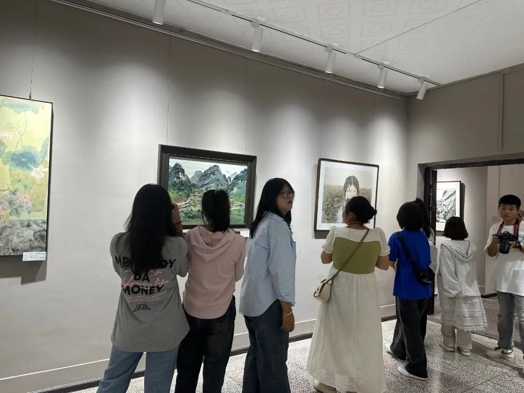 开幕仪式后,领导和来宾们走进展厅饶有兴致地参观展出的美术作品并与作者进行亲切交流。期间,安顺学院艺术学院师生和书画爱好者纷纷走进展厅参观学习,交流品鉴。