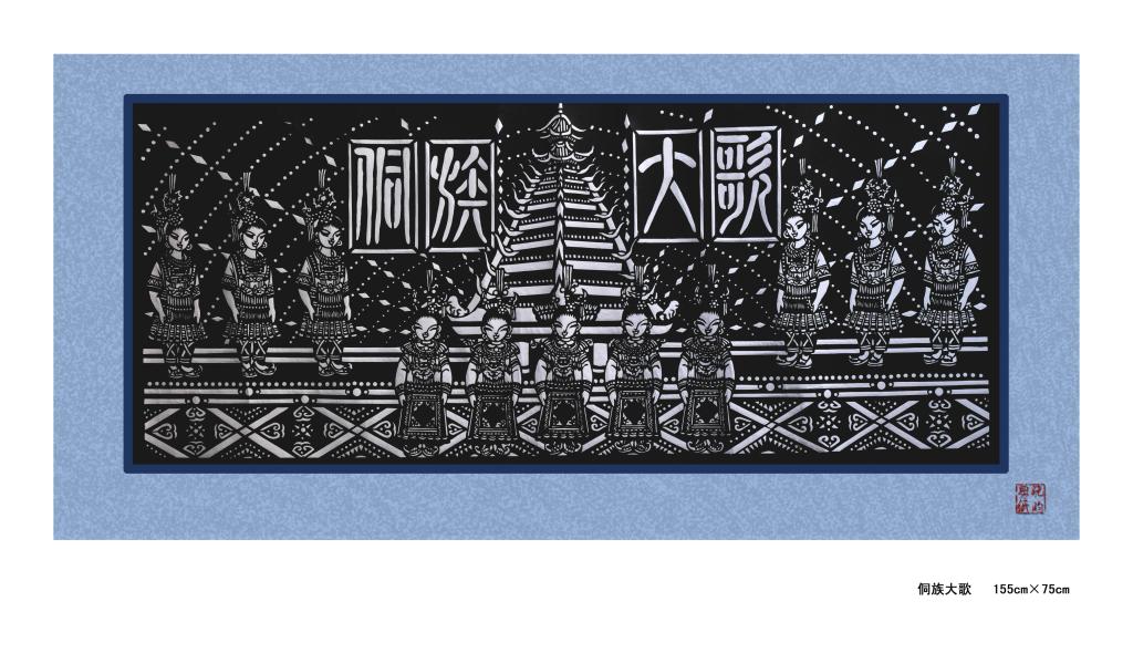 《侗族大歌》 剪纸 75*155cm