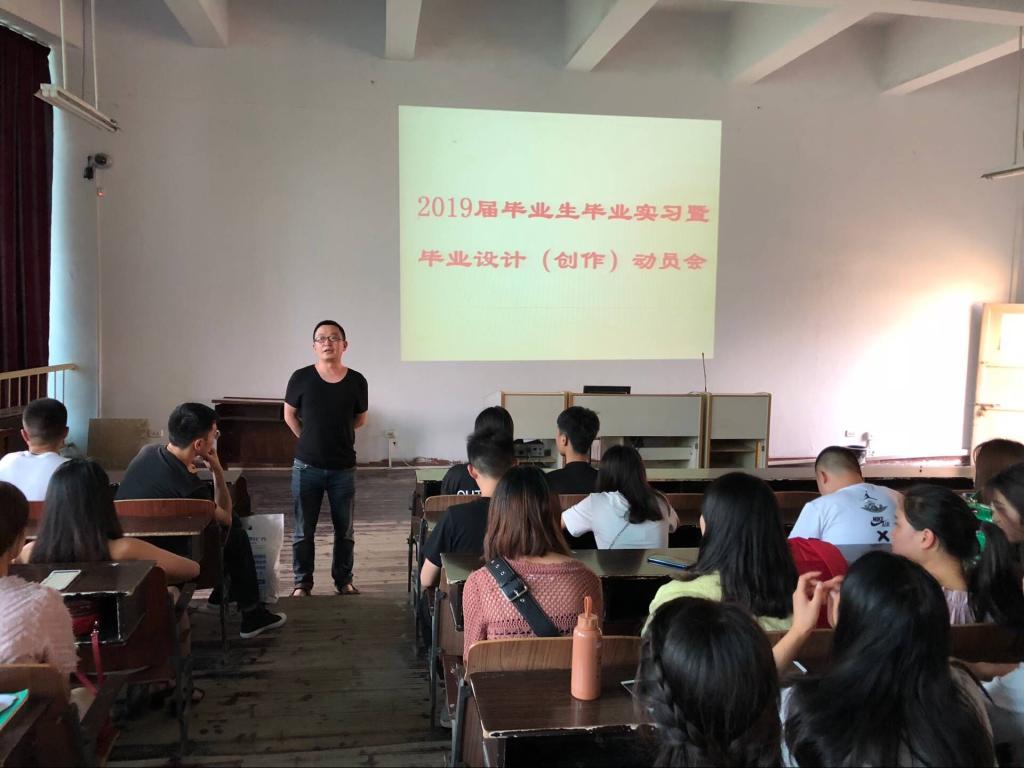 7月4日下午6点,艺术学院2019届毕业生毕业实习动员暨毕业设计(创作)启动大会在电教楼0951教室举行。艺术学院副院长何谦、教学、科研与实践管理科科长付善莉、各毕业班班主任及实习指导教师和2019届毕业生参加了此次大会,大会由教学、科研与实践管理科科长付善莉主持,大会开始,付善莉科长介绍整个会议流程。