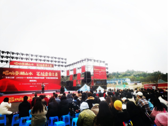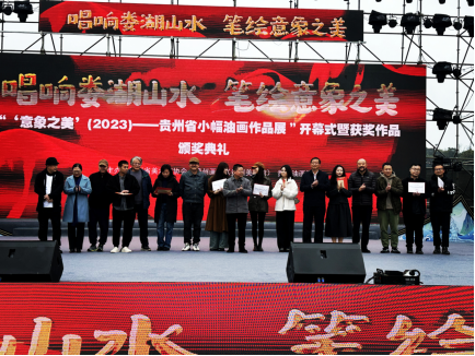 为打造文化强省、推进文化自信自强,反映贵州省油画创作多样化、丰富性,倡导“尽精微而致广大”的艺术追求,激发我省美术家创作出更多高质量小幅油画作品,培养推出更多高素质美术人才,并以艺术的形式反映我省新时代的发展变迁和人民美好、和谐的生活现状。由贵州省美术家协会、贵州画院(贵州美术馆)、贵州油画学会主办,贵州省青年美术家协会,安顺市美术家协会、安顺学院艺术学院承办,安顺金竹房地产开发有限公司、安顺牧创文艺创作中心、贵州育根文化发展有限公司协办的“‘意象之美’——贵州省小幅油画作品展”开幕式暨获奖作品颁奖仪式,于2023年11月14日下午在娄湖山水美术馆舞台隆重开幕。