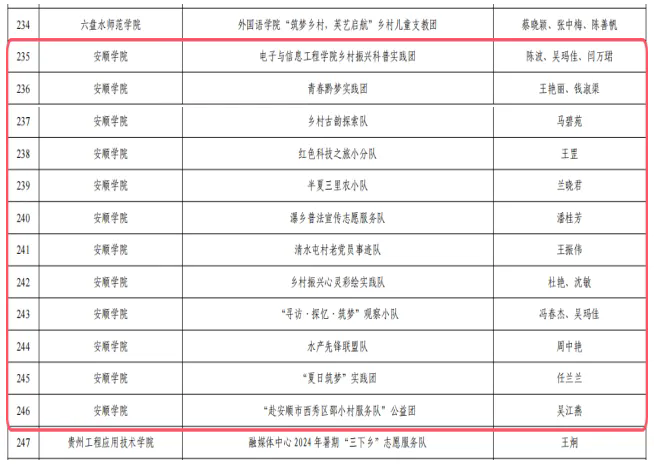 • 喜报‖安顺学院在2024年贵州省大学生暑期“三下乡”社会实践活动评选中获得28项荣誉