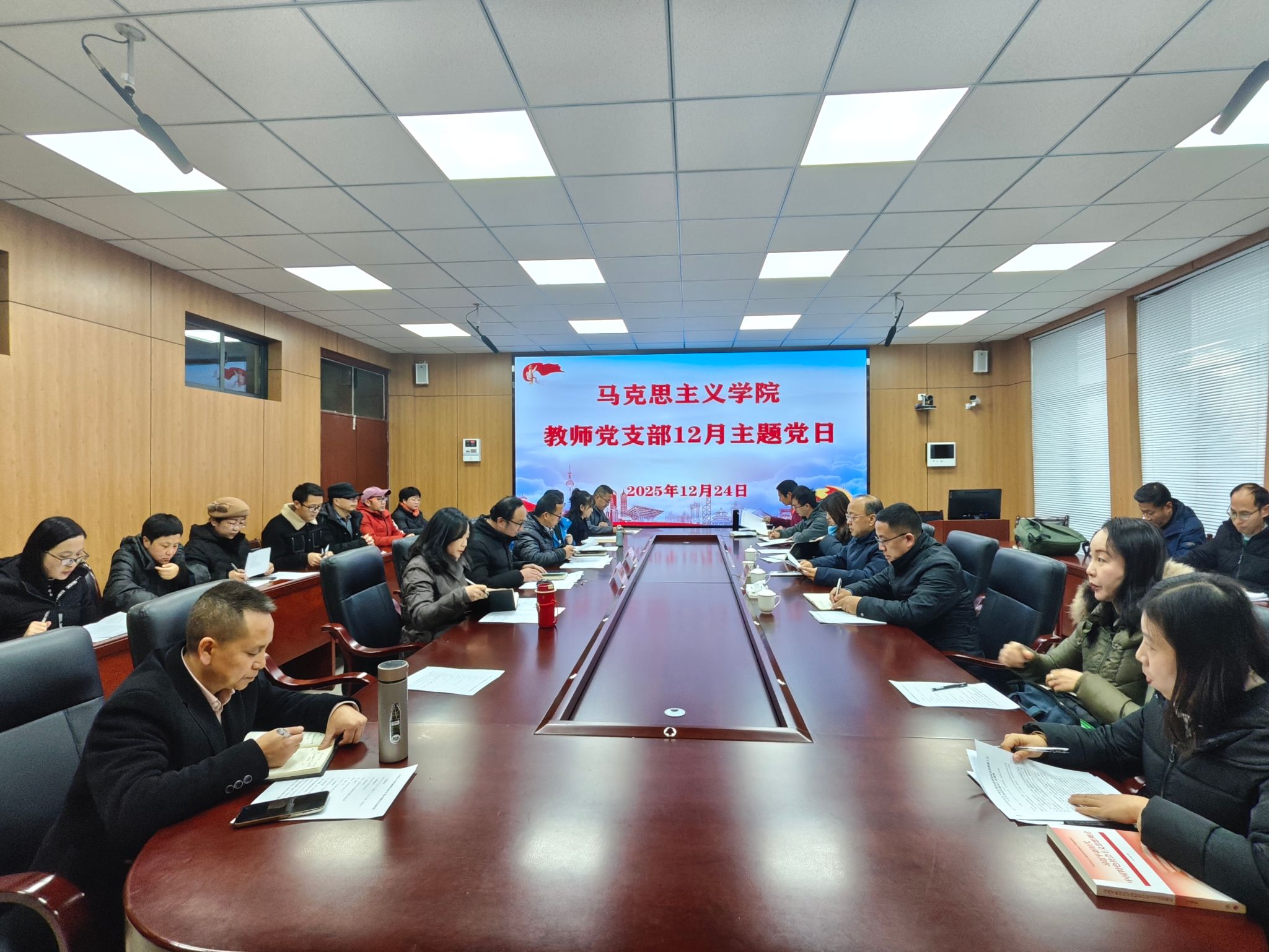 2025年12月24日,安顺学院党委书记程绪权参加马克思主义学院教师党支部12月主题党日活动和思政课教师“党的二十届四中全会精神如何融入思政课”集体备课会。马克思主义学院教师党支部全体党员和思政课教师参加了活动,活动由马克思主义学院教师党支部书记、副院长潘光才主持。