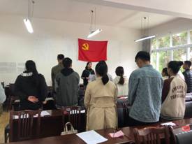2020年10月28日下午1:00,艺术学院学生支部“入党宣誓”活动在艺术楼二楼会议室举行,艺术学院学生党支部全体学生党员以及预备党员参加了此次活动,活动由学生党支部书记蔡跃同志主持。