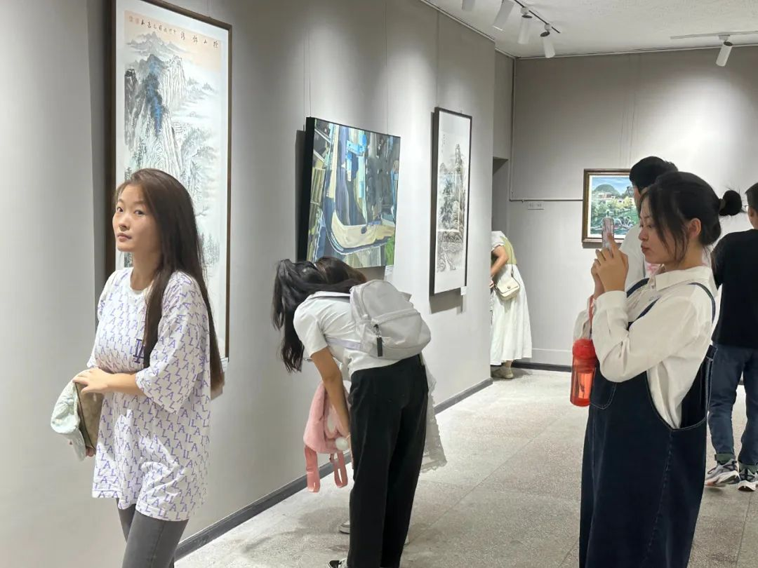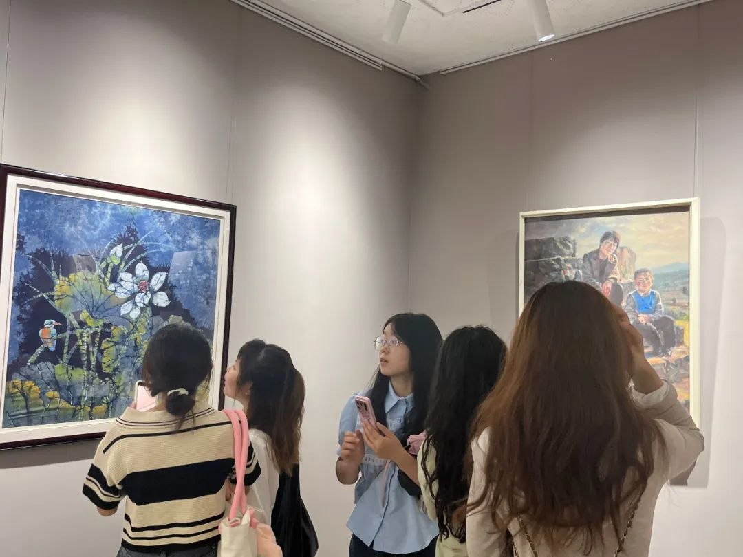 开幕仪式后,领导和来宾们走进展厅饶有兴致地参观展出的美术作品并与作者进行亲切交流。期间,安顺学院艺术学院师生和书画爱好者纷纷走进展厅参观学习,交流品鉴。
