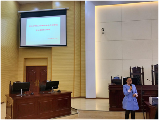 2018年4月17日上午,艺术学院2018届毕业生文明离校工作会在新教学楼A11教室召开。艺术学院党总支书记蒋晓昀、副院长何谦、专职辅导员、2014级毕业班班主任及全体毕业生参加了此次会议,会议由吴曼钰玲老师主持。